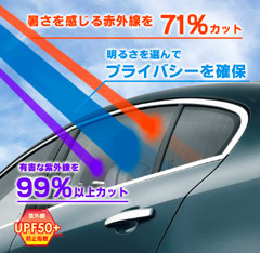「シルフィード」は、透明性や耐候性に優れ、全ての商品は日焼けの原因となる紫外線(UV)を99%以上カットするUPF50+相当の紫外線防止指数を達成しており、室内の内装やカー用品の変色・褪色防止にも効果がある。また、「シルフィード」を施工することで、万一の事故でガラスが割れた場合でも、破片の飛散を減少させる飛散防止効果が期待できます。